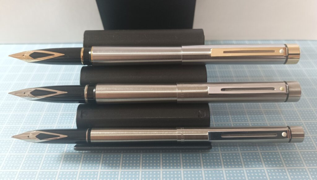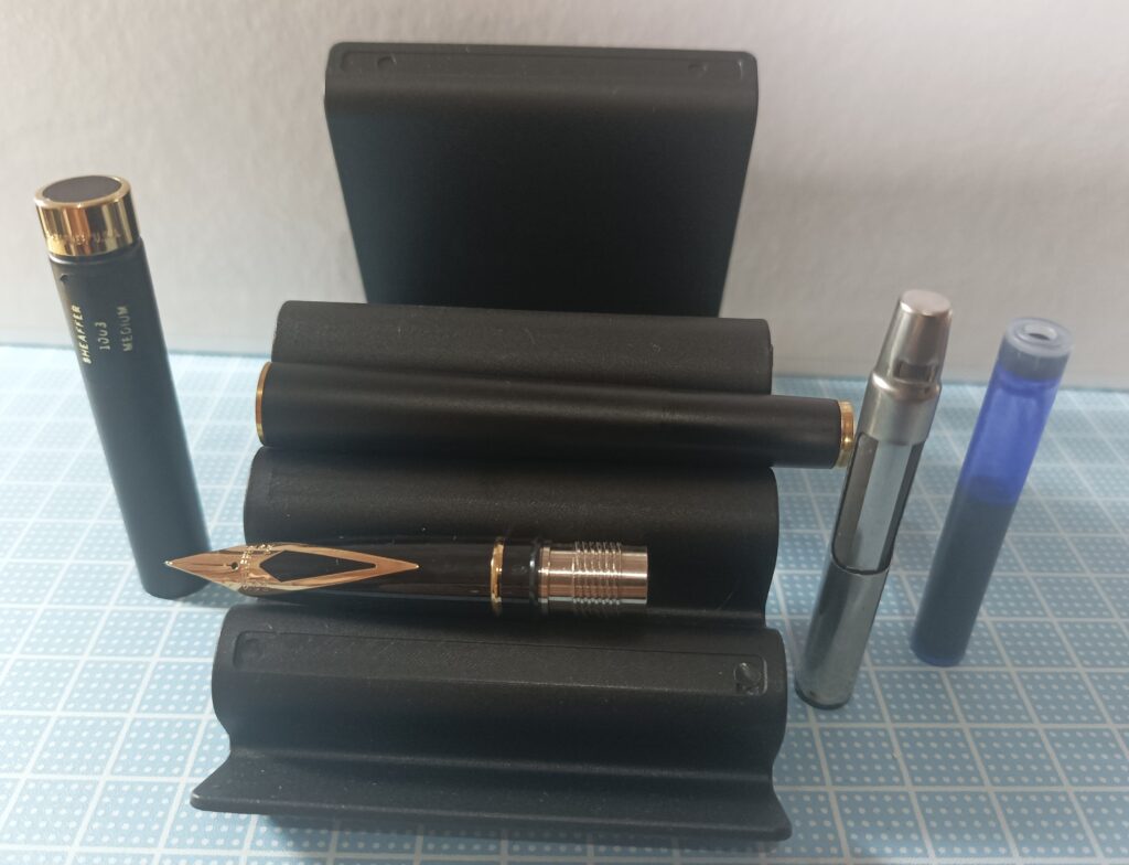 Conforme o tamanho da caneta mudava tudo como o conversor e o cartucho que precisam ser de modelos diferentes e isso incomodava um pouco manter vários modelos em atividade e uso constante.